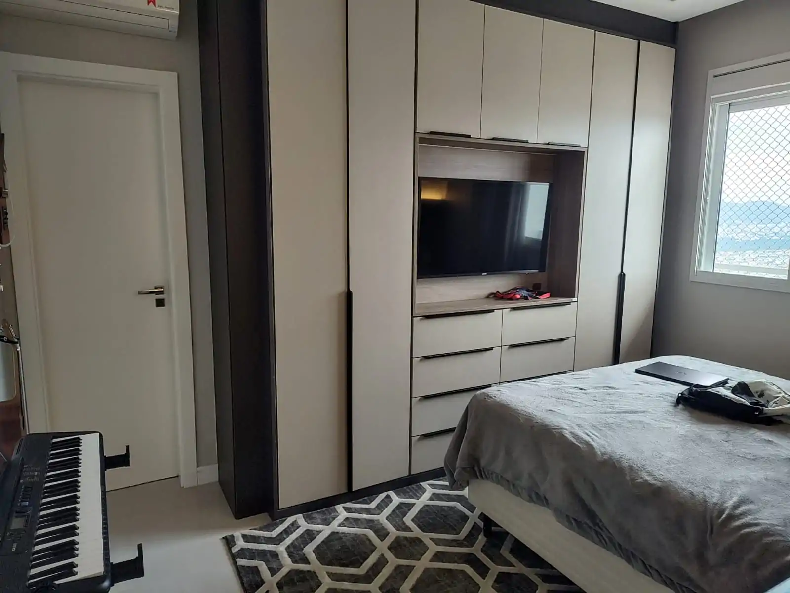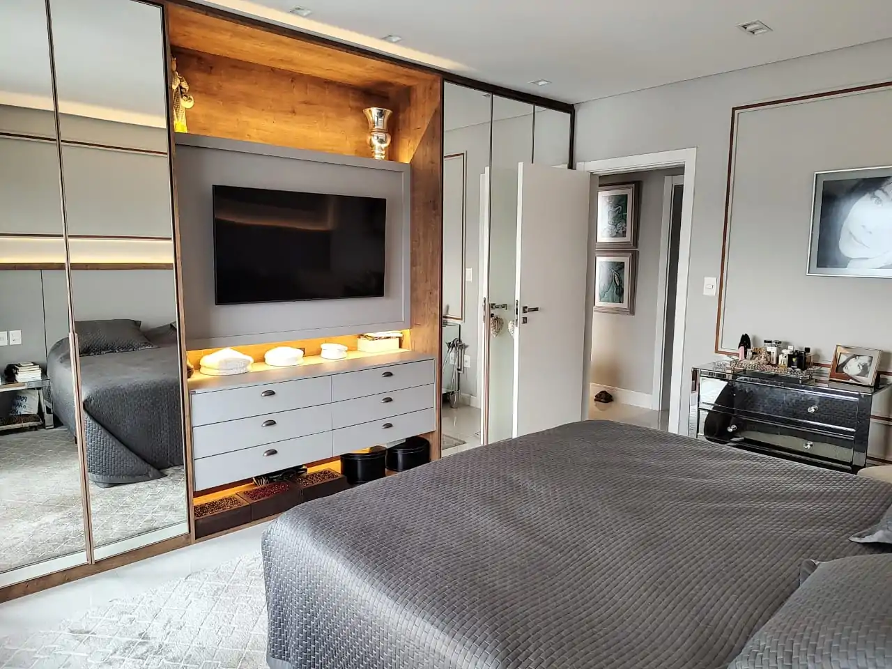 • 4 suítes com televisores e armários planejados. Corredor de 9 metros numa das suítes.