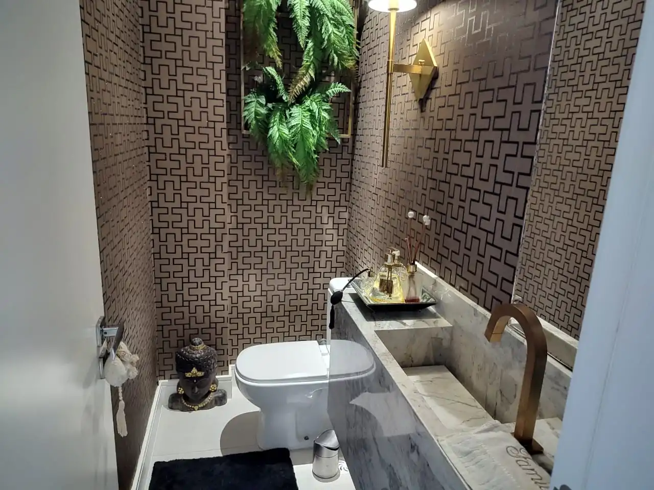 • Lavabo decorado com papel de parede.