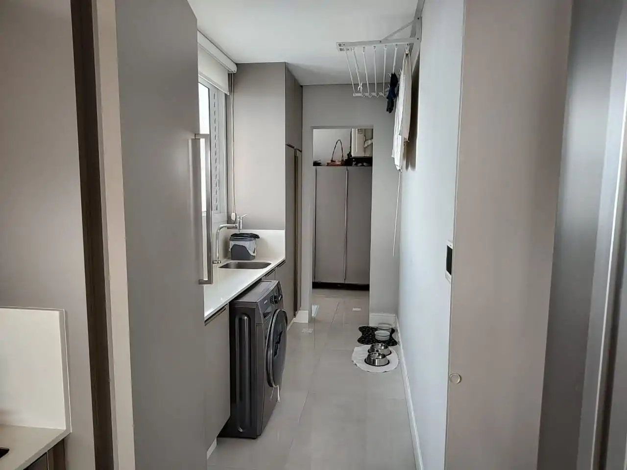 • Lavanderia fechada e funcional com espaço extra para armários.