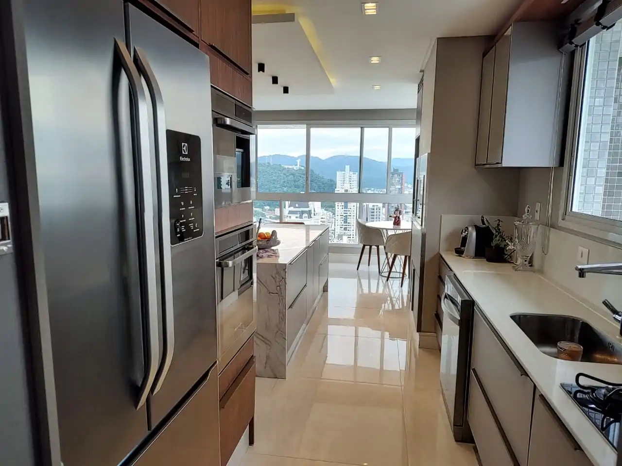 • Cozinha integrada com a sala de jantar, tendo churrasqueira a carvão, cervejeira e adega climatizada.