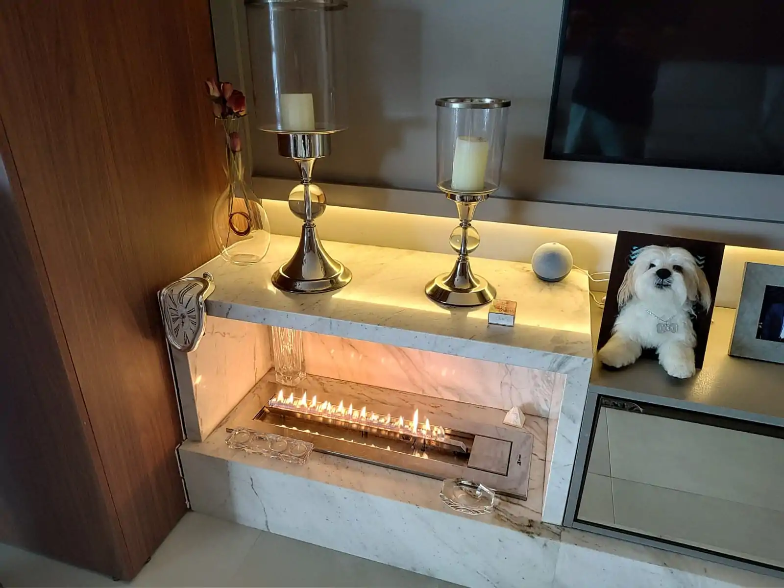 • Lareira a gás na sala de estar.